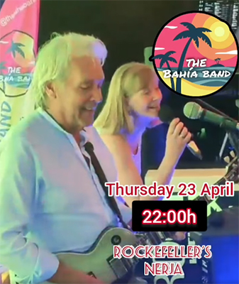 Optreden van The Bahia Band bij Sala Rockefeller NERJA – The Bahia Band speelt donderdagavond 23 april bij discotheek Rockefeller by Fitzgerald´s in Nerja, in het centrum van de stad aan de Calle El Chaparil 7. De show van de regionaal veel optredende band begint rond 22.00 uur. Delen: Delen op X (Opent in een nieuw venster) X Share op Facebook (Opent in een nieuw venster) Facebook Vind-ik-leuk Aan het laden...