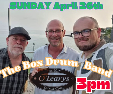 TORROX – The Box Drum Band (met onder anderen de in de Axarquía-regio populaire zanger en gitarist Lee Townsend in de gelederen, red.) treedt zondagmiddag 26 april op in de kustplaats Torrox, op circa tien kilometer van Nerja gelegen.