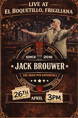 FRIGILIANA – Bij restaurant El Boquetillo aan de Calle San Sebastián 8 in het bergdorp Frigiliana (zeven kilometer landinwaarts van Nerja gelegen, red.) staat zondagmiddag 26 april een optreden van de zanger Jack Brouwer geprogrammeerd.