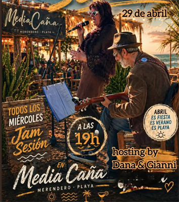 TORROX – Bij Chiringuito Medía Caña in de kustplaats Torrox treedt woensdagavond 29 april het regionaal vermaarde duo Dana Andrews & Gianni Piras op. Medía Caña is te vinden aan de Avenida del Peñoncillo (de kustweg) 46 in Torrox, op circa tien kilometer van Nerja.