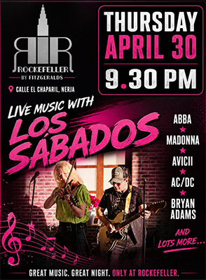 Dúo Los Sábados treedt op bij Sala Rockefeller in Nerja NERJA – Het Dúo Los Sábados treedt donderdagavond 30 april op bij Sala Rockefeller by Fitzgerald´s in Nerja, in het centrum van de stad aan de Calle El Chaparil 7. Het optreden begint rond 21.30 uur. Delen: Delen op X (Opent in een nieuw venster) X Share op Facebook (Opent in een nieuw venster) Facebook Vind-ik-leuk Aan het laden...